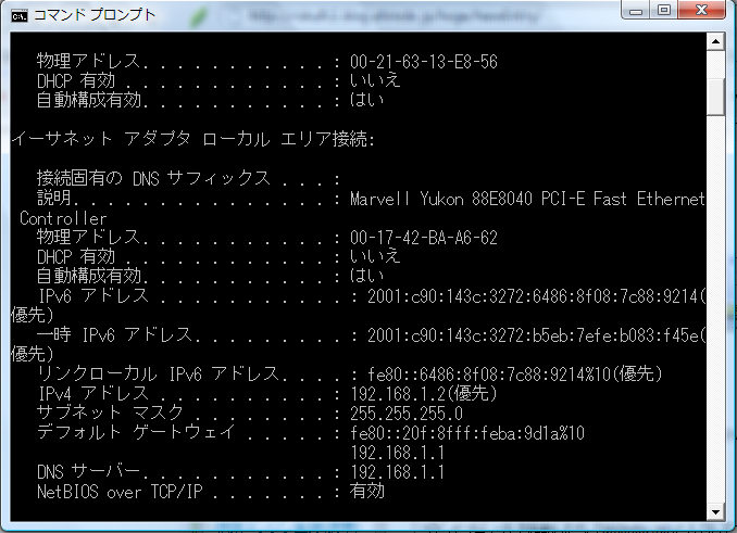 まずはじめに、自分のパソコンのIPを調べます。