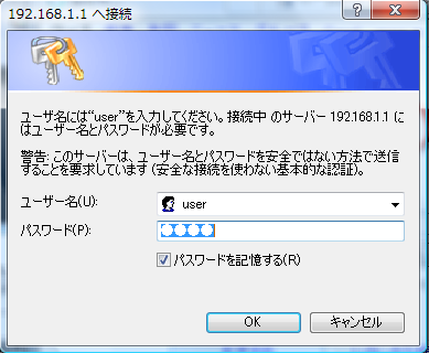 ユーザー名とパスワードを入力して「OK」をクリックします。