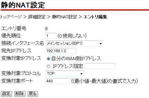 「静的NAT設定」を開きます。