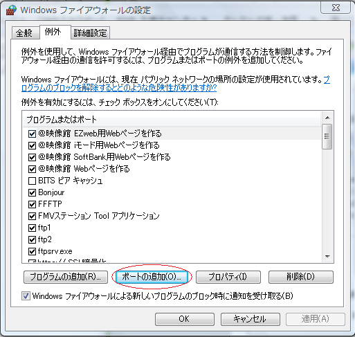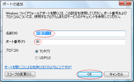 80番や21番以外のポート解放する場合は個別の設定が必要になりますので、下の方にある