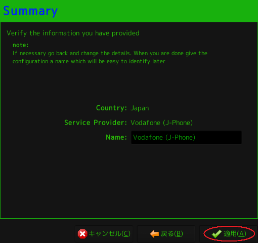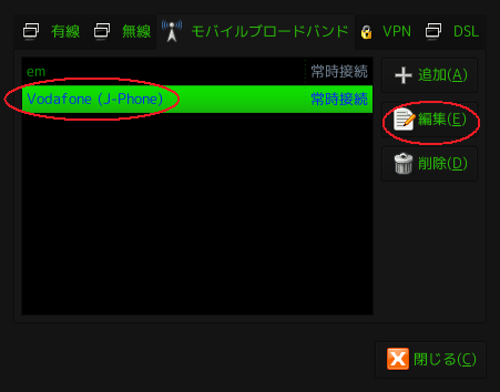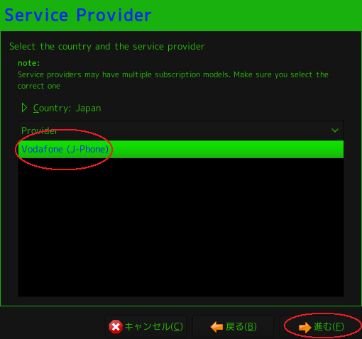 Vodafon(J-Phone)の設定が出来上がっているので選択して