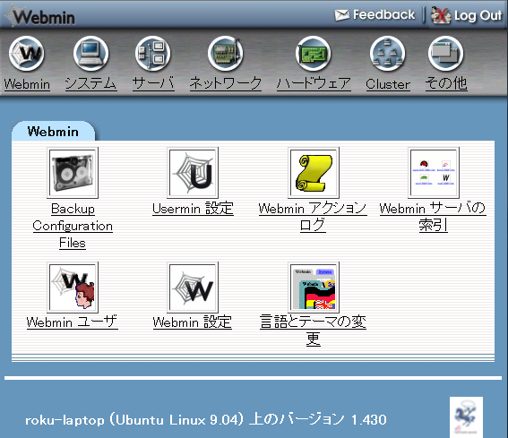 webmin(ウェブミン)とは、Apache2,Proftpd,MySQLなどのサーバーをwebブラウザ上からGUI操作できる管理ツールです。