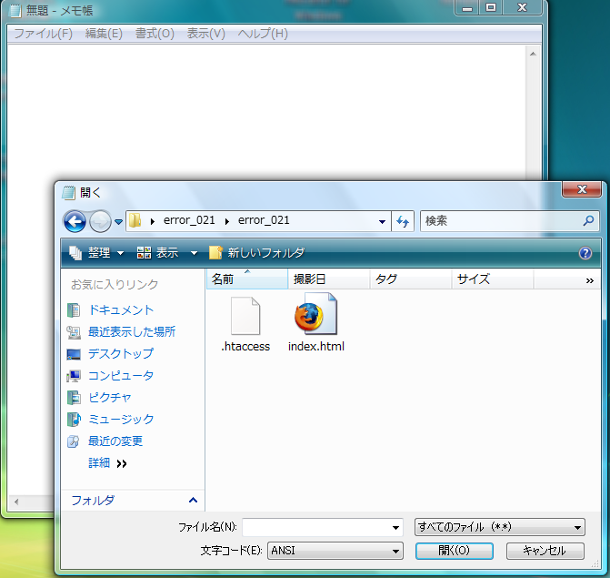 右下のファイルの種類をテキスト文章からすべてのファイルに変更しておかないとテキストファイル以外は表示されませんので、必ずすべてのファイルを選択してください。