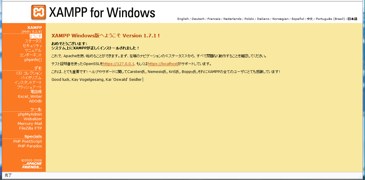 Windows Vista と Linux Ubuntu でインストールを試してみましたがどちらともすんなりインストールできました。私の場合、VistaでMySQLとPHPmyadminをインストールしようとして失敗した経験があったので、今回は、あまりのスムーズさにビックリしました。