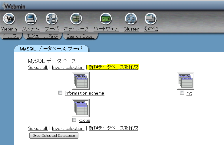 ファイルの展開が終わったらまずMySQLでXOOPS用の新しいテーブルを作成します。