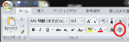 Word2007で文字を丸で囲む場合